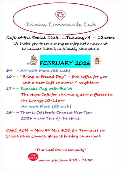 The Avening Community Café was founded in November 2018, with the aim of providing a welcoming and inclusive social meeting place for residents and visitors. All members of the Community are very welcome. The café takes place every Tuesday morning from 9 am to 12:00 noon at the Avening Social Club.